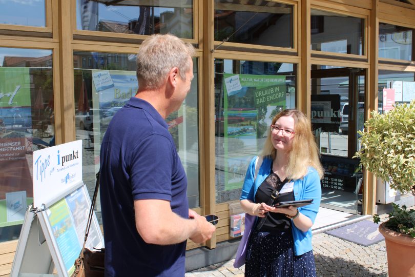 Bericht und Bild: Tourismusverband Chiemsee-Alpenland – Eine Studentin der LMU beim Auftakt der Chiemsee-Alpenland-Gästeanalyse in Bad Endorf.