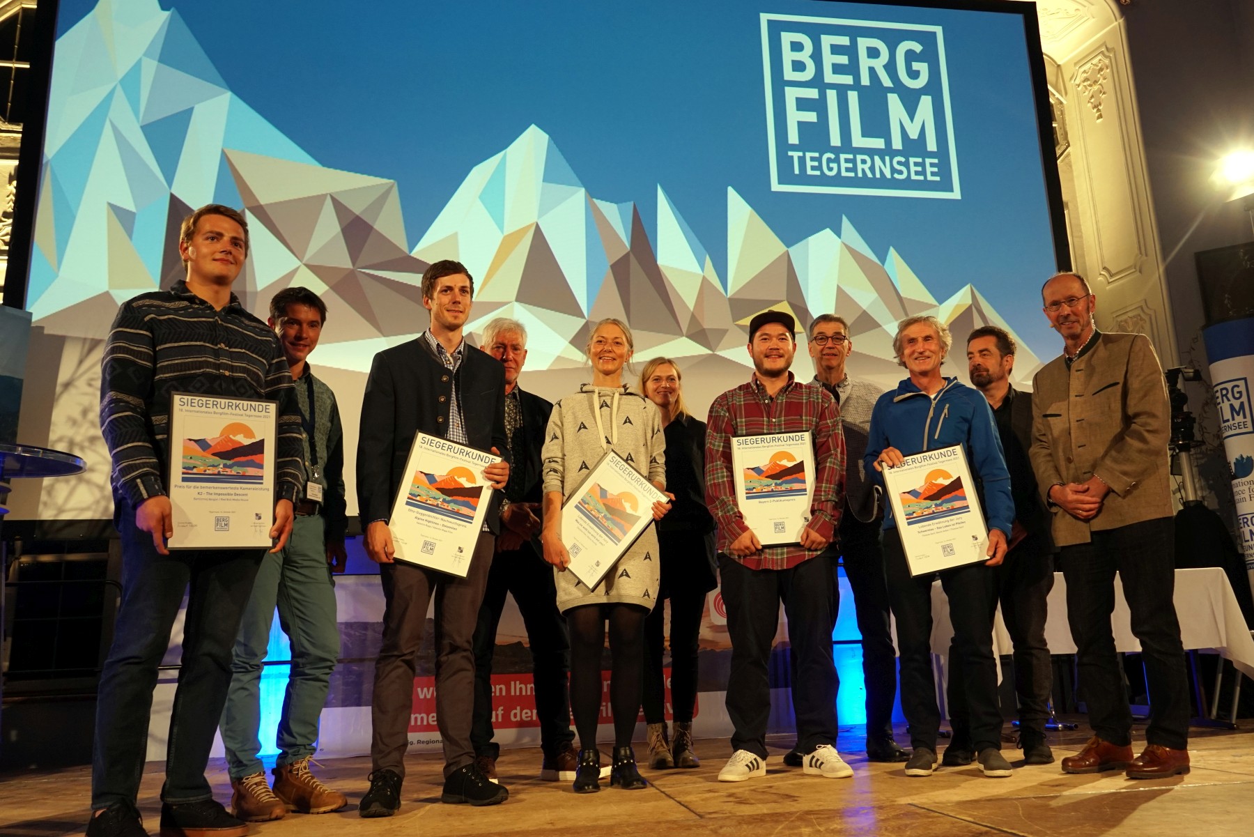Die Sieger und Jurymitglieder bei der Preisverleihung beim Bergfilm-Festival-Tegernsee Foto: Petra Rapp