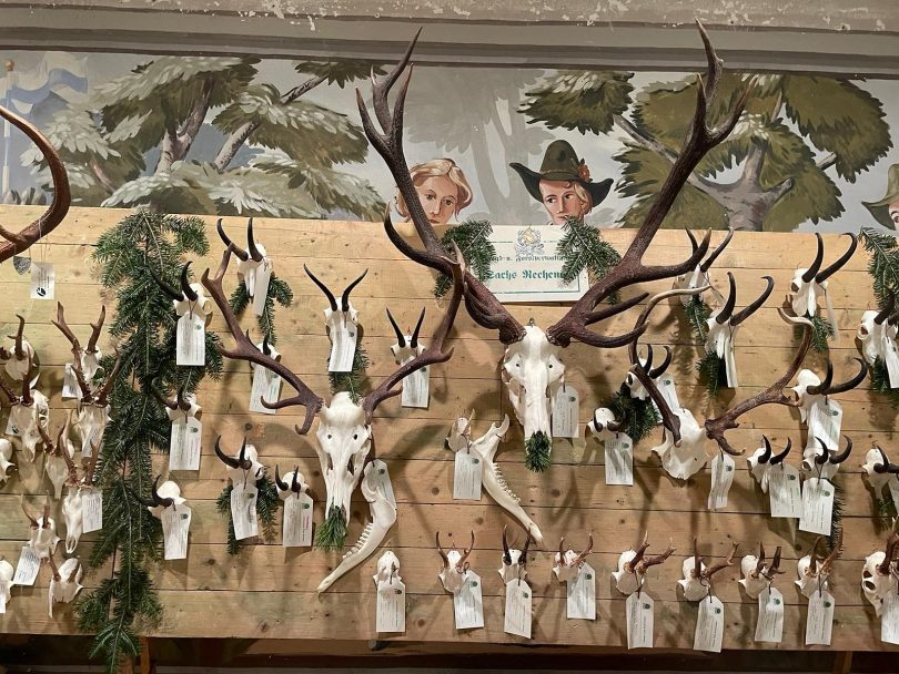 Nachdem im vergangenen Jahr keine Hegeschau abgehalten werden konnte und die Hochwild Trophäen einzeln und Revierweise begutachtet wurden mussten, waren die Beteiligten erleichtert, wieder alle Trophäen (auch Rehböcke) zeigen zu können. Die Bewertungs Kommission der Jägervereinigung Rosenheimer konnte einige gute Trophäen bei Rotwild und den Rehböcken auszeichnen.