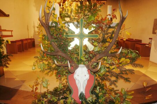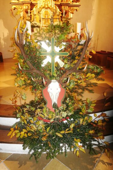 „Hubertus hat im Geschöpf den Schöpfer selbst gesehen und so wollen und sollen wir auch Tier, Natur und Welt verehren und zur Schöpfungsverantwortung in allen Bereichen der Gesellschaft beitragen“ – so der Seelsorger vom Pfarrverband Riedering. Zum Abschluss bedankte sich gastgebender Jäger Andi Hirzinger für die musikalische Gestaltung der Jagdhornbläser und für den sehenswerten Altarschmuck. Beim Gedenken an die Verstorbenen aus der Jägerschaft wurde besonders an Simon Hilger aus Söllhuben gedacht, er zeigte 50 Jahre Verantwortung für Wald, Wild und Jägergemeinschaft. Zum anschließenden gemütlichen Beisammensein (Tobias Gaiser nach dem Segen: „Jetzt machen wir es wie die Bayerische Staatsregierung: wir verlegen die Jagd in die Wirtschaft!“) konnte Jakob Hündl aus Aschau als Vorsitzender der Jägervereinigung Rosenheim im Gasthaus Hirzinger zahlreiche Ehrengäste und Freunde der Jagd willkommen heißen.