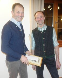 Ehrung mit Urkunde für Hans Rauch (li.) für 25jährige Vorstandstätigkeit durch seinen Nachfolger Albert Niedermayer