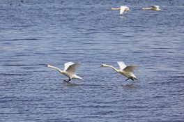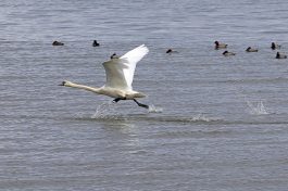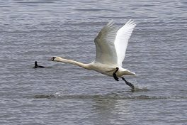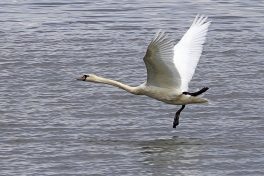 Es ist immer wieder aufs Neue ein grandioses Erlebnis, Höckerschwänen beim Landen und Starten zuzusehen. Will ein Höckerschwan sich wieder aus dem Wasser in die Lüfte bewegen, muss er ganz schön strampeln beim Überwasserlaufen bis er Fluggeschwindigkeit erreicht. Da braucht es schon eine gute Kondition. Hat er es geschafft, kann das „Fahrwerk“ eingezogen werden.