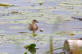 Ein Zwergtaucher zeigt sich vor dem Turm.