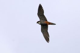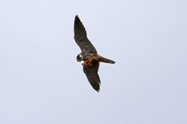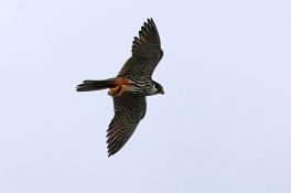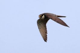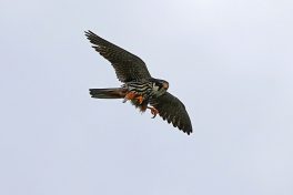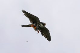 Auf den Zug in die afrikanischen Winterquartiere sind Baumfalken wieder am Chiemsee eingetroffen. Sie jagen in der Luft Libellen und insektenfressende Kleinvögel, aber auch Käfer und fliegende Ameisen, und fressen diese auch im Flug.