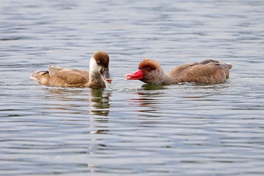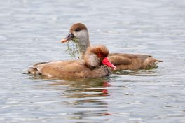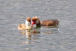 Beim Strandbad Rimsting haben mehrere Paare Kolbenenten nahe am Ufer die Badegäste abgelöst. Es geht friedlicher zu als bei den Schnatterenten in der Hirschauer Bucht. Das wichtigste ist die Gefieder Pflege. Auch Balzverhalten kann schon wahrgenommen werden. Die Erpel beißen schon mal ein Weibchen, vermutlich das Vorspiel für eine spätere Paarung.