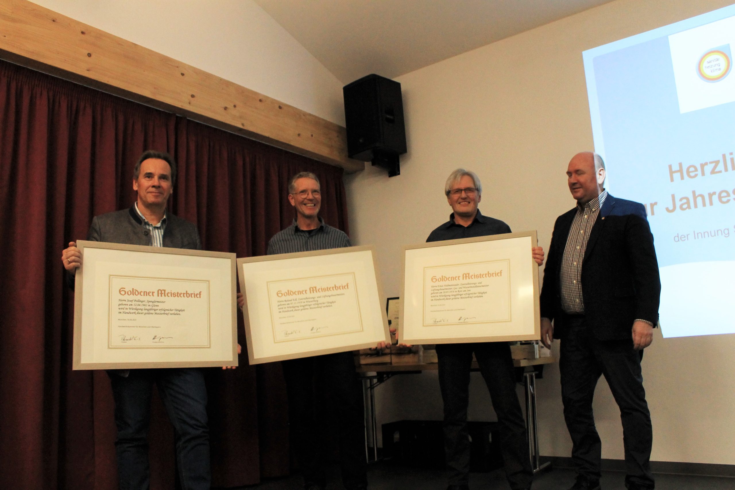 Übergabe der Goldenen Meisterbriefe v.l. Josef Pollinger, Roland Edl, Ernst Heilmannseder sowie Gerhard Hardrath