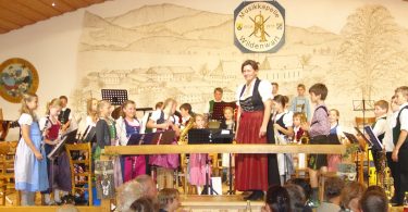 Auch um den Nachwuchs bei der Musikkapelle Wildenwart brauchen sich die Freunde der Blasmusik keine Sorgen zu machen. Im Vorprogramm zum Konzert der Großen zeigten die 27 Mädchen und Buben der neu gegründeten „Zwergerlkapelle“ unter der Leitung von Jugendleiterin Eva-Maria Gruber bei ihrem ersten öffentlichen Auftritt ihr Können. Mit viel Probenfleiß und noch mehr Probenschweiß lernten die Musikzwergerl alles, was ein junger Musikant braucht und zeigten, dass sie ihr Handwerk schon verstehen. Schon einen Schritt weiter sind die 38 Burschen und Mädchen der Jugendkapelle, ebenfalls unter der Stabführung von Eva-Maria Gruber. Aus ihren Reihen schöpfen die Musikanten der großen Kapelle jedes Jahr ihren Nachwuchs ab. Sie zeigten mit ihren Stücken, dass sie schon jederzeit bei den Großen mitmachen könnten. Der schwierige Maxglaner-Zigeunermarsch war Höhepunkt und Abschluss ihrer Darbietung. Sie erhielten – vor allem von ihren stolzen Eltern, Großeltern, Freunden und allen weiteren Besuchern – überaus starken Beifall. Damit verfügt die Musikkapelle Wildenwart mittlerweile über drei Klangkörper, die auch getrennt voneinander auftreten können und mit ihrem Namen für gute Unterhaltung garantieren.