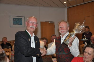 In diesem Jahr ging auch eine Ära zu Ende, denn Lothar Rechberger, der im letzten Jahr sein 50jähriges Jubiläum in der Liedertafel feierte, hatte schon angekündigt, dass er sein Amt als Organisator aufgibt und dann nur noch Sänger im Chor ist. R. Mühl dankte ihm nochmals für seine jahrzehntelange, aufopferungsvolle Arbeit in der Liedertafel und für die vertrauensvolle Zusammenarbeit und überreichte ihm eine Flasche Williamsbirne