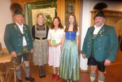 Fotos: Hötzelsperger – Eindrücke von der Jahresversammlung des Atzinger Trachtenvereins – 1. Neu in den Atzinger Verein aufgenommen wurden: von links: Vorstand Konrad Huber, Emilie Haßlberger, Claudia Stocker, Verena Riepertinger, stellvertretender Vorstand Paul Schlosser.