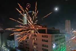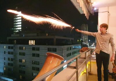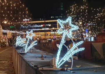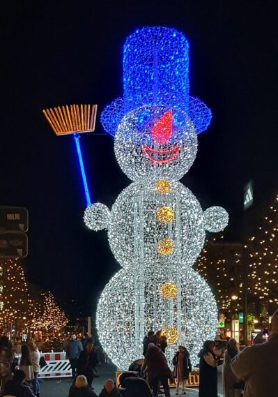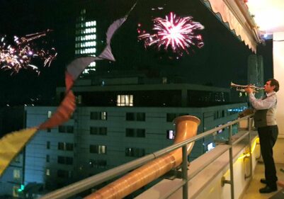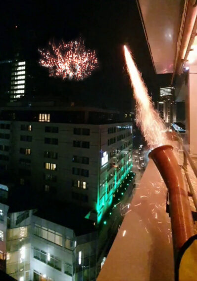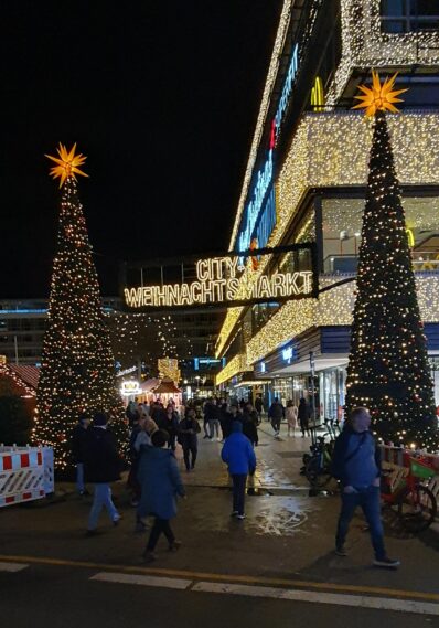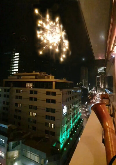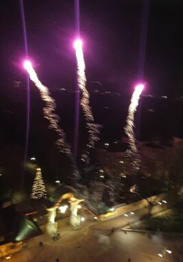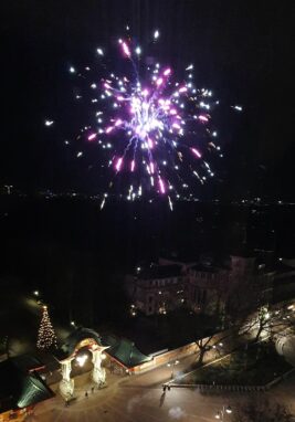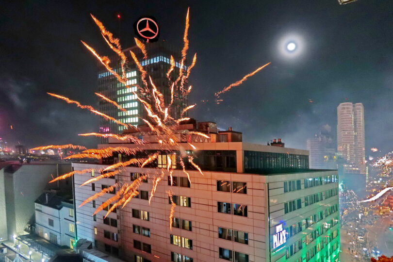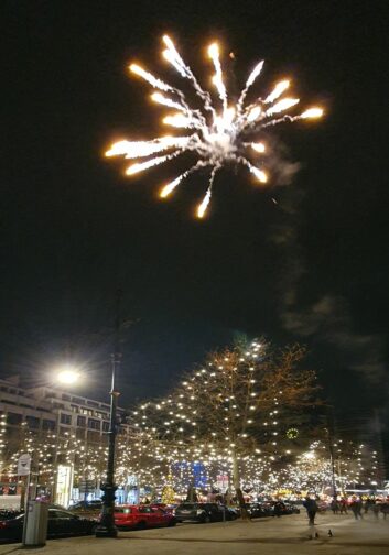 Nach einem gemütlichen Silvester-Dinner luden Brigitte und Franz Thyes die Gäste in ihre Wohnung am Breitscheidplatz ein, über den Dächern von Berlin, um auf den Jahreswechsel anzustoßen. Wie in den Jahren zuvor war dabei die besondere Attraktion, das neue Jahr mit alpinen Klängen einzuläuten. Hierzu hat der Vorsitzende vom „Verein der Bayern in Berlin“ sein schweizer Alphorn mitgebracht. Es ist ein vielseitiges Instrument, dass nicht nur zur Klangerzeugung dient, sondern sich auch als Raketenabschussrampe bewährt hat, um Feuerwerksraketen gezielt in den Berliner Himmel zu lenken. Unweit vom Europa Center, am Brandenburger, fand in diesem Jahr, nach zwei Jahren Corona-Pause, auch wieder eine Silvesterfeier statt, allerdings in einem kleineren Rahmen. Dabei wurde auch in diesem Jahr auf ein Höhenfeuerwerk verzichtet. Umso mehr knallte es jedoch im übrigen Stadtgebiet, wo es leider zu einigen unschönen Zwischenfällen kam. Am Breitscheidplatz bleib erfreulicherweise alles friedlich. Die Berliner und Touristen aus dem In- und Ausland feierten auf dem traditionellen Weihnachtsmarkt rund um die Kaiser-Wilhelm-Gedächtnis-Kirche in fröhlicher, stimmungsvoller Atmosphäre. Punkt 24:00 Uhr erhellte dann ein prächtiges, farbenreiches Feuerwerk, dem Himmel über der City West.