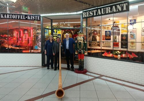 Es ist inzwischen schon Tradition, dass im Berliner Europacenter der Jahreswechsel mit alpinen Klängen gefeiert wird. So haben auch in diesem Jahr Brigitte und Franz Thyes wieder Freunde in Ihre „Kartoffelkiste“ dazu eingeladen. Dieses urige Restaurant in der West-City, am Breitscheidplatz, direkt neben der Gedächtniskirche, betreiben die Wirtsleute Thyes nun schon seit 25 Jahren. Ihre bodenständige, saisonale Küche bietet neben Klassikern der deutschen Kochkunst auch deftige bayerische Schmankerln. Die Hauptgerichte des Hauses basieren aber, wie der Name des Restaurants vermuten lässt, auf Kartoffeln. So gehören Bratkartoffeln, Kartoffelpuffer, Kartoffelsalat, und viele andere Kartoffelgerichte zu den Spezialitäten der Kartoffelkiste.