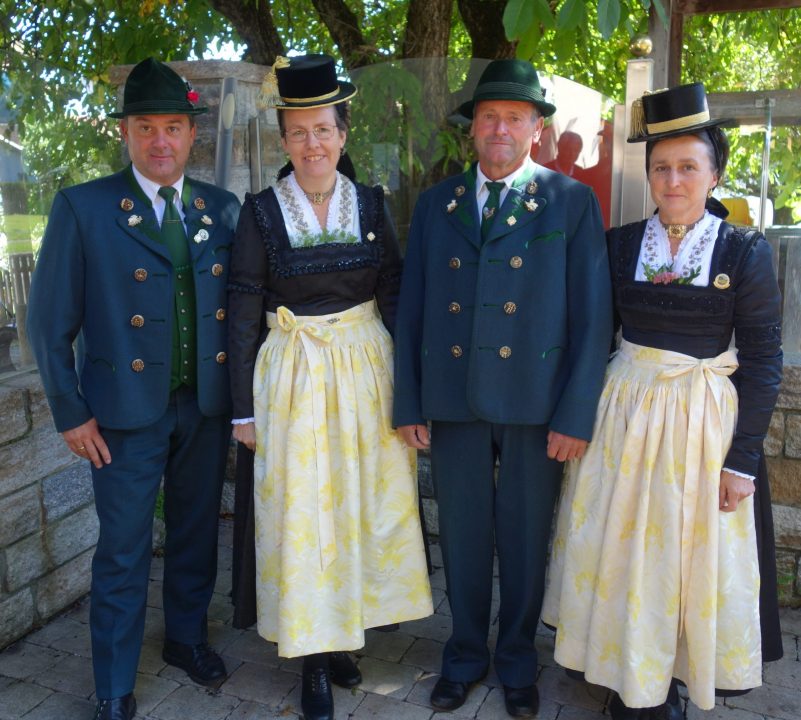 – ausgeschiedene Ausschussmitglieder Trachtenverein von links: Martin Färbinger, Kathi Stettner, Anderl Schmid und Vorständin Lisi Hilger