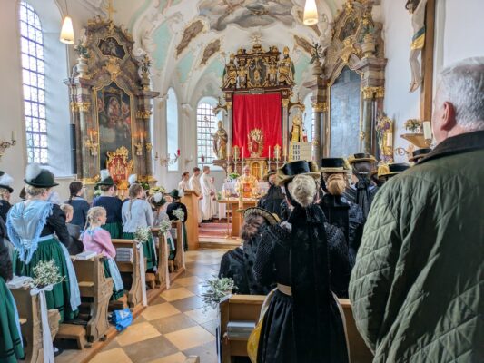Der Versammlung voraus ging der Kirchenzug und Gottesdienst. Der Kirchenzug startete wie gewohnt am Trachtenheim und wurde musikalisch von der Wildenwarter Blasmusik begleitet. Besonders erfreulich war die starke Beteiligung: Viele Vereinsmitglieder – von den Röckefrauen über die Aktiven und Kinder bis hin zu den Mannerleuten – waren in Tracht gekommen. Beim Gottesdienst in der Pfarrkirche St. Bartholomäus feierte der neue Seelsorger des Pfarrverbandes Westliches Chiemseeufer Pfarrvikar Amit Sinha Roy seine erste Messe in Hittenkirchen.