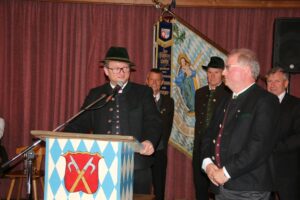 links Florian Paul, der Erich Rasinger für 40-jährige Vereinszugehörigkeit auszeichnet.