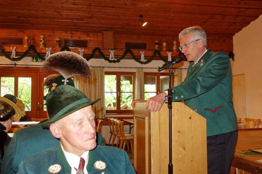 Dem Gottesdienst mit Kaplan Stefan Leitenbacher in der Kirche „St. Bartholomäus“ folgten ein Gedenken für die verstorbenen Vereinskameraden im Friedhof und die Versammlung zum 96. Vereinsjahr. Hierzu konnte Vorstand Kaufmann auch einige Ehrenmitglieder, Alt-Bürgermeister Klaus Daiber und Ersten Bürgermeister Philipp Bernhofer begrüßen. Beim Totengedenken wurde besonders an die vor wenigen Monaten verstorbene Barbara Fleckinger erinnert, die mit 95 Jahren und 77 Mitglieds-Jahren die älteste Trachtlerin im Verein war. Schriftführerin Andrea Scheck informierte, dass bei fünf Theater-Vorstellungen unter der Leitung von Franz Wörndl mit 1.100 Zuschauern ein neuer Besucherrekord aufgestellt werden konnte. Vierzig Kinder machten sich im Winter auf den Weg zum Klöpfelgehen, ihr Erlös von 1.200 Euro kam der Bürgerstiftung Bernau zugute. Vielfältig waren und sind die Nutzungen im vereinseigenen Trachtenheim, zum Beispiel beim Pfarrabend, im Fasching, bei den Tanzkursen mit Florian Wörndl oder bei Firmen-, Familien- und Geburtstagsfeierlichkeiten. „Die Viehzuchtgenossenschaft, der Maschinenring, die Sparkasse, die Volksbank Raiffeisenbank und weitere Veranstalter waren allesamt recht zufrieden, so dass wir hoffnungsvoll den zukünftigen Veranstaltungen entgegensehen können“, so Christoph Kaufmann, der dann einlud zur Trachtler-Wallfahrt am 25.Mai nach Raiten (mit Vereinsmitglied Seppi Steindlmüller als Pfarrer), zum Dorffest der Ortsvereine am 23. Juli (Ausweichtermin 25. Juli), zum Vereinspreisplatteln am 12. August, zum Kirtatanz am 24. August und zum Sänger- und Musikanten-Hoagascht am 7. Oktober. Am Gautrachtenfest beim Nachbarsverein „Daxenwinkler“ Atzing am 30. Juli (mit der Musikkapelle Söchtenau) und an den weiteren Gaufestveranstaltungen wollen die Hittenkirchener Trachtler möglichst zahlreich dabei sein.