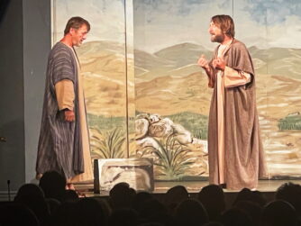 Fotos: Hötzelsperger – Eindrücke vom Stück JAKOBUS im Bad Endorfer Theaterhaus – u.a. Dialog Apostel Jakobus mit Jesus
