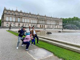 Foto/s/Repro: Hötzelsperger – 1. v.l.MartinKurz – Ado Kihara – Peter Anner – Elisabeth Schelzke – Andi Starek. 2. Ado Kihara im Vereinshaus Atzing. 3. Proben im Atzinger Vereinshaus. 4. Vor Schloss Herrenchiemsee