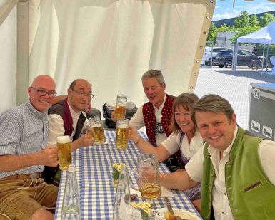 Andi Starek war seit 2017 mehrfach in Japan unterwegs und lernte so die Oberkrainer Fans um Ado Kihara kennen. Wie er informierte, gibt es bereits mehrere Musikgruppen im Oberkrainer-Sound in Japan, seit 2019 unter anderem auch die TOKYO SPITZBUAM, bestehend aus vier japanischen Musikern, die mit ihm musikalisch um die Welt reisen. Nach einem lustigen musikreichen Wochenende in Bayern mit Besuch von Schloss Herrenchiemsee ging es für Ado Kihara und Andi Starek weiter in die Steiermark und nach Slowenien, dabei kam es auch zu Auftritten im berühmten Gasthof Avsenik in Begunje. „Musik verbindet und nochmals vielen Dank an den Trachtenverein Atzing, der kurzfristig den Saal und auch das notwendige kühle Bier für einen intensiven Probentag zur Verfügung stellte“ – so Martin Kurz, der als Mitglied des Atzinger Trachtenvereins die internationale Musikanten-Probe koordinierte und der als Mitglied der Oktoberfestkapelle „Die Kirchdorfer“ bei Japan-Auftritten bereits Ado Kihara kennenlernte.
