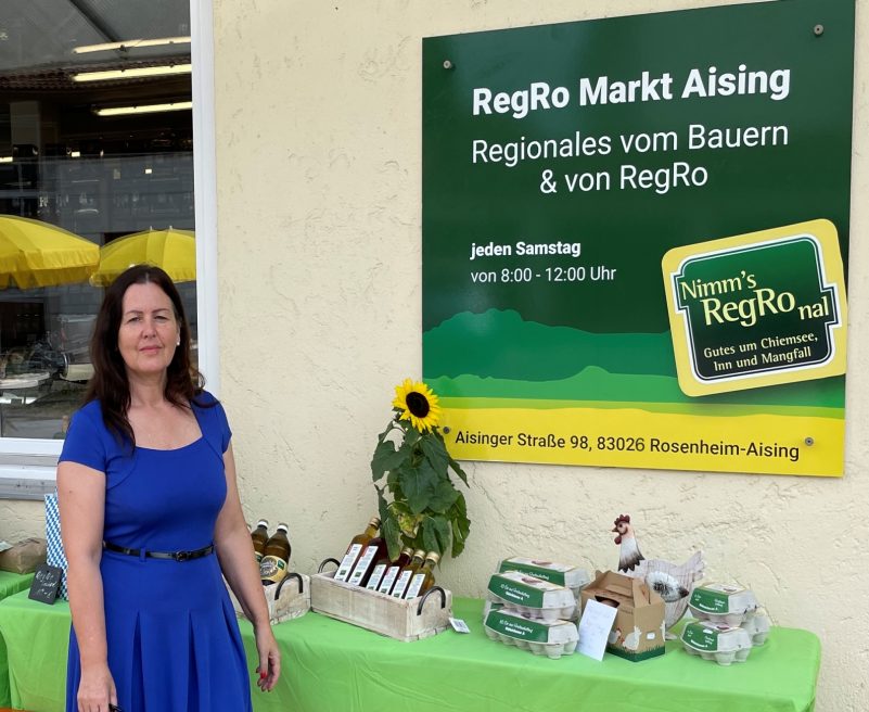 Der im Jahr 2003 im Landratsamt Rosenheim gegründete Verein zur Förderung der Regionalentwicklung im Raum Rosenheim e.V. (RegRo) ist neuerdings mit dem VR-Verkaufsmobil „Frisch vom Hof & Nimm´s RegRonal“ unterwegs. Erstmals war dieses mobile Angebot am vergangenen Samstag beim RegRo-Markt in Rosenheim-Aising mit Biobrot, Biokäse, Geräuchertem, Nudeln, Mehl, Dinzler Kaffee, Freilandeier, Spirituosen, Essig, Öl, Sauerkraut, Gebäck, Rinser-Eis und weiteren Lebensmitteln von heimischen Erzeugern präsent. Zur Eröffnung bedankte sich RegRo-Vorsitzender Sebastian Friesinger bei Christian Bürger von meine Volksbank Raiffeisenbank für die großzügige Unterstützung bei der Anschaffung des Verkaufsmobils, das nunmehr jeden Samstag in der Aisinger Straße 98 von 8 Uhr bis 12 Uhr für regionalen Einkauf zur Verfügung steht. Elisabeth Widauer von der RegRo-Vermarktungs-GmbH „Nimm´s RegRonal“ freute sich über die ersten Kunden, die vielfach überrascht waren vom großen Sortiment im Wagen, im Laden sowie von weiteren regionalen Anbietern und gab bekannt, dass sich bei den Aisinger Samstagsmärken interessierte Direktvermarkter zu einem oder mehreren Terminen anschließen können. Der Verkaufswagen mit Regionalem von Bauern und RegRo ist fortan immer dienstags und mittwochs von 8 Uhr bis 13 Uhr auf dem Ludwigsplatz in Rosenheim anzufinden.