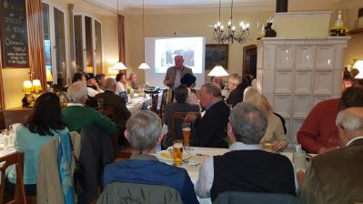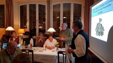 Nach Beendigung der Hauptversammlung referierte Beiratsmitglied Dr. Bernhard Josef Stalla kurzweilig in seinem knapp halbstündigen Vortrag mit dem Thema „Herrlích strömender, grünblauer Fluß…der Inn und die Innschifffahrt“.