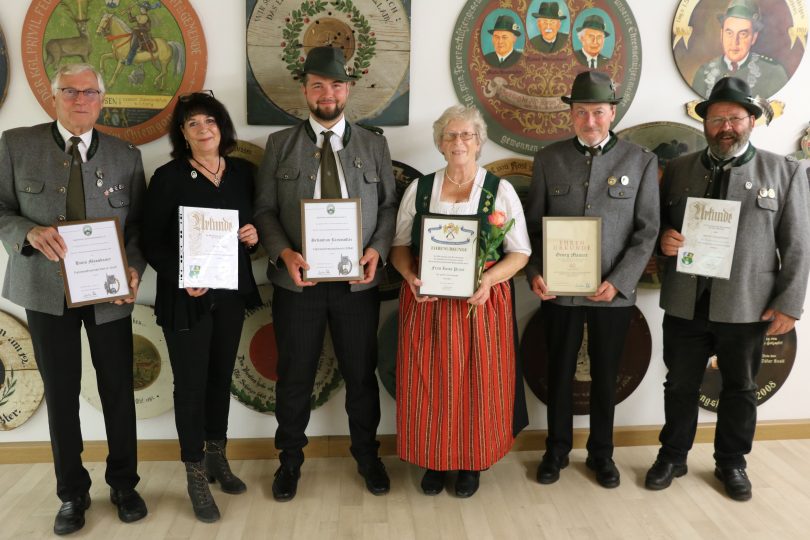 Bei den turnusmäßig anstehenden Neuwahlen unter der Leitung der dritten Bürgermeisterin Monika Schmid gab es keine Überraschungen. Alex Thanhäuser bleibt auch in den kommenden zwei Jahren zweiter Schützenmeister der Feuerschützengesellschaft Aschau (FSG Aschau). Einstimmig wurde er bei der Jahreshauptversammlung in seinem Amt bestätigt, ebenso Kassenfrau Alexandra Badstuber. Georg Lengauer, Georg Maurer, Sebastian Feistl, Sebastian Kiesmüller und Christian Rucker gehören weitere zwei Jahre lang als Beisitzer dem Vereinsausschuss an. Jenny Pelzl prüft weiterhin die Kasse zusammen mit Korbinian Schmid (bisher Markus Huhn) Schützenmeister Franz Kiesmüller junior verlieh das Abzeichen des deutschen und des bayerischen Sportschützenbundes für 50-jährige aktive Mitgliedschaft an Alex Steindlmüller, das Abzeichen für 40 Jahre erhielten Franz und Georg Maurer. Dietmar Scheck wurde für 60-jährige Vereinsmitgliedschaft geehrt und Heinrich Holzapfel für 40 Jahre. Alexandra Badstuber, Martin Klampfleitner senior und Gitti Pelzl erhielten für ihre aktive Mitgliedschaft in der Vorstandschaft die „Silberne Gams“ des Schützenbezirks Oberbayern. Mit der goldenen Vereinsehrennadel zeichnete Schützenmeister Kiesmüller Luise Praxl und Peter Staudacher aus, mit der silbernen Heinrich Holzapfel. Hans Moosbauer erhielt das goldene Ehrenabzeichen Fahnenabordnung, Sebastian Kiesmüller das silberne. Alex Thanhäuser verlas den Sportbericht: bei den Vereinsschiessen waren durchschnittlich 21 Gewehr- und drei Pistolenschützen vertreten. 37 Frauen und Männer beteiligten sich am 84. Königsschiessen der FSG. Schützenkönig bei den Luftgewehrschützen wurde Schützenmeister Franz Kiesmüller, den Titel des Luftpistolenkönigs gewann Markus Huhn, Jugendkönig wurde Maxi Gawlik.