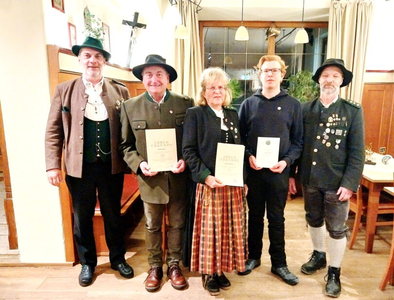 Der Kassier Sepp Linner berichtete von einen positiv gelaufenen Jahr. So konnte ein neues Jugendgewehr gekauft werden. Christian Lindner und Clemens Gruber bescheinigten ihm bei der Kassenprüfung tadellose Arbeit. Die Entlastung der Vorstandschaft erfolgte ohne Gegenstimmen. 1. Gauschützenmeister Bernhard Brehmer dankte für gutes Miteinander im Gau und Bezirk. Den Chiemgauadler übergab er an Martin Spath. Für 25 Jahre im Bayrischen und deutschen Schützenbund bekamen Renate Lindner und Helga Scheiber die Treuenadeln. Josef Linner bekam diese für 50 Jahre.