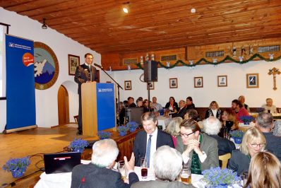 Interessante Zusammenhänge vermittelte als Referent des Abends Mirko Gruber, der stellvertretende Sprecher des Vorstands der Volksbank Raiffeisenbank Rosenheim-Chiemsee eG mit insgesamt 79.329 Mitgliedern, was einem Zuwachs von 3.070 Mitgliedern im Jahr 2018 bedeutet. Gruber erläuterte weltweite Zusammenhänge und Risiken für stabile Währungen und für den Handel und er freute sich, dass bei den jüngsten Vertreterwahlen dank des erstmals eingesetzten Online-Wahlverfahrens nicht nur eine verdoppelte Wahlbeteiligung erreicht, sondern mit der Wahl die Anzahl der Frauen und der Jüngeren vergrößert werden konnte. Rückblickend war das vorjährige Raiffeisen-Fest zum 200jährigen Jubiläum mit rund 4.000 Mitgliedern und Kunden im Festzelt Riedering das größte Ereignis von insgesamt 40 Veranstaltungen für Kinder, Jugendliche, Schüler, Arbeitsplatz-Suchende und Erwachsene. Die VBRB Rosenheim-Chiemsee ist –so Mirko Gruber weiter- die größte Primär-Genossenschaft in Bayern und die Neunt-Größte in ganz Deutschland. „In unseren Geschäftsräumen werden 25 verschiedene Sprachen gesprochen und wir haben 550.000 Euro für 4.700 Schulungstage der rund 1.000 Mitarbeiterinnen und Mitarbeiter ausgegeben“. Stolz vermeldete Gruber weiter, dass bei den letztjährigen Jubilar-Ehrungen 1.100 Jahre Berufs-Erfahrung zusammenkamen und dass sich neben den Finanz- und Bank-Fachkräften innerhalb der Kundenberatung weitere Spezialisten wie für IT, Stiftungen, Internet-Shops und für die Agrar-Beratung befinden. „14 Millionen Euro wurden im Vorjahr investiert, durchwegs in Abstimmung mit regionalen Firmen. Bei etwa 200.000 Kunden mit 3.921 Millionen Euro an Einlagen und mit 3.804 Millionen Euro an Kredit haben wir ein echtes und ausgeglichenes Bank-Geschäfts-Ergebnis. Unabhängig davon werden wir die Veränderungen von Gewohnheiten und Technik im Auge behalten, zum Beispiel beim Instant Payment (Bezahlen in Echtzeit) und bei den über 80 Digital-Service-Formen“. Abschließend bedankte sich Christian Denk für den aufschlussreichen Vortrag von Mirko Gruber, aber zugleich auch bei den Musikanten, den Preaner Buam sowie bei der Metzgerei Kunz für das wohlschmeckende Abendessen und nicht zuletzt beim Trachtenverein Hittenkirchen für das Überlassen des Trachtenheimes. Zu den Ehrengästen des Abends gehörten unter anderem Andreas Rauch für die mit der VBRB Bank zusammenarbeitenden Versicherungs-Gesellschaften, Konrad Fritz als Vertreter der Bausparkasse Schwäbisch-Hall, Gerhard Ruf als ehemaliger Vorstand und Peter Holzner als Vorgänger im Amt des Priener Geschäftsführers, Aufsichtsrats-Vorsitzender Prof. Dr. Josef Stadler, Geschäftsführerin Andrea Hübner von der Prien Marketing GmbH sowie die Abordnungen der Priener Blaskapelle, der Feuerwehr Rimsting und der Feuerwehr Prien. Letztere musste allerdings wegen einer Alarmierung die Versammlung vorzeitig verlassen. Stellvertretend für die gesamte Belegschaft durfte an diesem Abend Notburga Wlach einen Blumenstrauß entgegennehmen, denn –so Geschäftsführer Christian Denk – gute Mitarbeiter sind der Garant und das Fundament dafür, dass die hohen Herausforderungen im gemeinsamen Handeln zu Chancen und Lösungen umgemünzt werden.