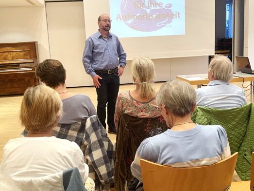 In einem Kurzvortrag informierte Michael Voggenauer von zwei seiner Tätigkeiten: einmal als Gemeinderat und Referent für die rund 150 Priener Vereine und dann als hauptamtlicher Mitarbeiter des Betreuungswerkes Diakonie Rosenheim Stadt und Land. Dazu informierte er, dass die Diakonie plant, auch in Prien Sprechstunden einzurichten, um weitere ehrenamtliche Mitarbeiter zu finden und zu unterstützen.