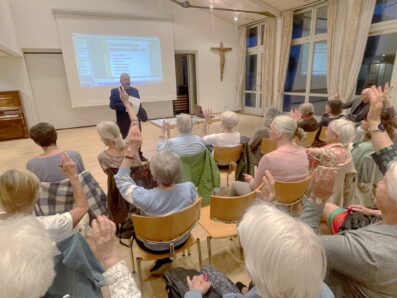 Für Stefan Scheck und für die Begleiter kommt mit dem Paragraph 217 zum assistierten Suizid eine neue Aufgabe und Herausforderung zu. „Hier müssen wir gemeinsam Haltung finden, denn es kam schon und kommt bestimmt wieder mal vor, dass ein Patient sterben möchte und den Begleiter fragt, ob er ihm denn nicht helfen möge“ – so Stefan Scheck, der sich auch auf dem Gebiet des Dialogs mit den Schulen auf neue Wege einstellen möchte. Wie die ersten Erfahrungen mit Realschulen und Gymnasien zeigten, waren Schüler und Lehrer, die im Ethik- oder Religions-Unterricht das Thema diskutierten, sehr offen gegenüber dem Leben, das sicher einmal tödlich sein wird.