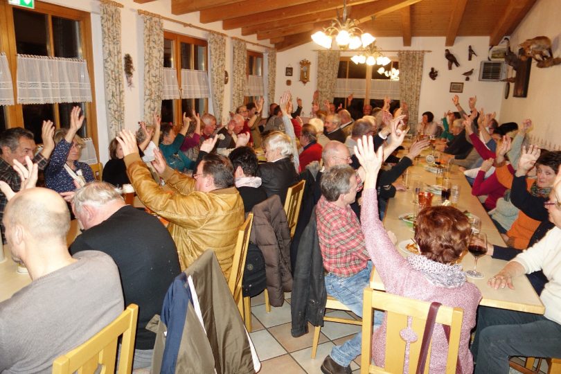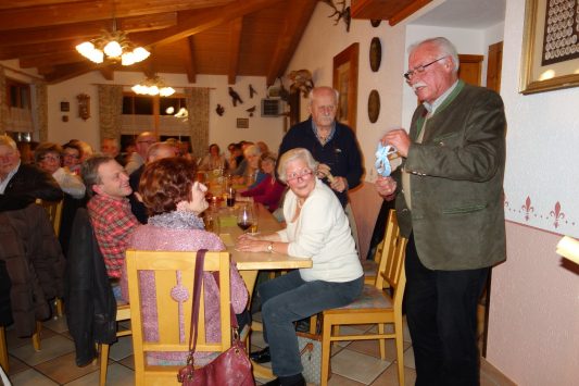 Genau die Hälfte der derzeit 164 Mitglieder vom Hufeisenverein fand sich zum Jahresabschluss ein. In den Berichten von Schriftführerin Angelika Düser-Mato und von Kassenführerin Barbara Brand wurde unter anderem erinnert an ein Faschingstreiben in der Vereinshütte, an Schnuppertage im Hufeisenwerfen für junge Wildenwarter Blasmusikanten, an die Unterstützung des Priener Ferienprogramms mit Besuch des Märchenparks in Ruhpolding, an eine Vereinsspende für die OVB-Weihnachtsaktion sowie an einen Brauereibesuch in Traunstein. Sportwart Manfred Zott und die aktiven Hufeisenwerfer nahmen an zehn Hufeisenturnieren, davon fünfmal in Tirol teil und kamen stets mit guten Platzierungen nach Hause. Die ordnungsgemäße Führung der Kasse durch Barbara Brand und Eva-Maria Gruber bescheinigten die Kassenprüfer Georg Hötzelsperger und Rico Ohm. Vorstand Peter Freund konnte in seinem Bericht von 14 Neuzugängen berichten, denen zwei Austritte und drei Sterbefälle gegenüberstehen. Sein besonderer Dank galt Hans Steindlmüller für die Platzpflege sowie Steffi Mayer und Maria Freund für die Hüttenputzdienste und allen Frauen, die sich jeden ersten Dienstag im Monat in der Vereinshütte zum geselligen Beisammensein treffen. In seiner Vorschau gab Freund bekannt, dass am 17. Juni 2018 wieder ein Internationales Hufeisenturnier in Kaltenbach sein wird, dass am 3. Oktober 2018 das heuer wegen unguter Witterung ausgefallene Turnier mit den Ortsvereinen von Atzing und Wildenwart nachgeholt werden soll und dass für 24. November 2018 zum dritten Mal von Vereinskamerad Jakob Steiner im Vereinshaus in Atzing ein Herbst-Advent-Hoagascht des Hufeisenvereins organisiert wird. Für das Wochenende vom 25. bis 27. Mai wird wieder ein Vereinsausflug durchgeführt, Ziel ist die Bodensee-Region. Wie Zweiter Vorstand Günter Adlwart ausführte, sind die Besichtigung von Pfahlbauten, ein Ritteressen im Felsenkeller, der Besuch der Insel Mainau und der Wallfahrtskirche Birnau sowie Aufenthalte in Lindau und Marktoberdorf vorgesehen, Anmeldungen werden ab sofort in der Vereinshütte (Dienstag und samstags ab 15 Uhr) angenommen. Bürgermeister Jürgen Seifert sagte in seinem Grußwort: „Heuer war für Atzing ein besonderes Jahr, ihr habt Gemeinschaft, Ehrenamt, Unterordnung und Mithilfe bewiesen, als die Trachtler die Mammutaufgabe eines Gautrachtenfestes angingen“, so der Bürgermeister, der für den beispielhaften Zusammenhalt in der Dorfgemeinschaft dankte und nachträglich Vorstand Peter Freund zum 70. Geburtstag gratulierte. In einer Ergänzungswahl, die aufgrund von Hochzeit des bisherigen Fähnrichs Thomas Schwarzer erforderlich wurde, wurden Jakob Steiner zum Ersten Fähnrich und Dieter Schaub zu seinem Stellvertreter gewählt. Ein besonderer Dank für die insgesamt acht Einsätze der Vereinsstandarte galt noch den Begleitern Hermann Rosendahl (Ehren-Fähnrich), Robert Gmeiner und Rupert Westner. In der freien Aussprache bedankte sich der Trachtenverein Atzing für die starke Unterstützung beim Gaufest (u.a. Festzeichen-Basteln, Festzeichen-Verkauf, Kuchenspenden, Zelt-Auf- und Abbau sowie Getränkeverkauf beim Festzug), der bevorstehenden Auftrittsreise der Atzinger Trachtler zur Grünen Woche vom Dienstag, 23. Januar bis Donnerstag, 25. Januar schließen sich die Mitglieder des Hufeisenvereins an, Anmeldungen nimmt Anton Hötzelsperger, Telefon 08051-3604 entgegen.