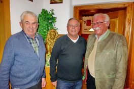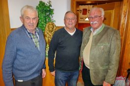 Foto: Hötzelsperger: Neue Fähnriche hat der Hufeisenverein, von links Jakob Steiner (1. Fähnrich), Dieter Schaub (2. Fähnrich) und Vorstand Peter Freund.
