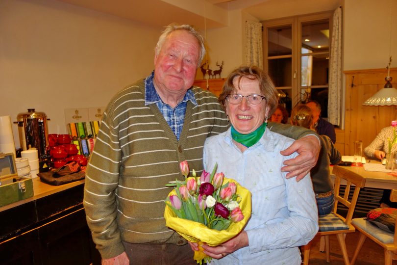 Auf großes Interesse stieß der Farblichtbildervortrag von Anni Prankl, die nach vier Almsommern auf dem Laubenstein den Entschluss fasste, in vier mehrwöchigen Etappen seit 2011 nach Santiago de Compostela zu pilgern. Insgesamt 2.700 Kilometer ab dem Chiemsee war Anni Prankl an 102 Tagen auf dem Jakobsweg unterwegs. Ihre Eindrücke und Bilder unter anderem von einem Abstecher nach Lourdes wurden mit großem Interesse und viel Beifall aufgenommen. Mit einem Blumenstrauß bedankte sich Vorstand Felix Perl bei Anni Prankl für ihren Vortrag.