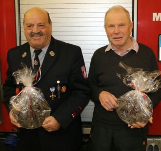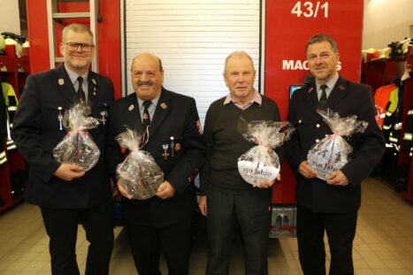 „Der Schwerpunkt der Vereinsarbeit war die Vorbereitung und die Durchführung unseres großen Gründungsfestes zum 150-jährigen Jubiläum“. Vorstand Georg Noichl gab einen ausführlichen Bericht über die Aktivitäten des Feuerwehrvereins, zusammen mit Schriftführer Thomas Bartsch ließ er noch einmal die Ereignisse des großen Festes vorbeiziehen. „Wir haben zweieinhalb Jahre intensiv auf das Fest hingearbeitet!“ Er dankte allen Mitgliedern für ihre Mitarbeit bei den Festvorbereitungen: „Man musste keinen rufen – alle waren sie da, sei es vor dem Fest, während des Festes oder auch beim Abbau nach dem Fest“. Bei allen weltlichen und kirchlichen Veranstaltungen im Gau, in Frasdorf und Umrathshausen, bei runden Geburtstagen und Hochzeiten, beim Frühschoppen, beim Jahrtag und dazu bei den Renovierungsarbeiten und beim Ramadama rund ums Feuerwehrhaus, überall war die Umrathshauser Feuerwehr beteiligt. Dem Verein gehören derzeit 115 Feuerwehrleute an, drei davon wurden für ihre Verdienste zu Ehrenmitgliedern ernannt. „Es ist erfreulich, dass unsere alten Feuerwehrkameraden auch noch immer den Weg zu den Veranstaltungen ins Feuerwehrhaus finden und nicht einfach daheim bleiben“. Noichl überreichte den Ehrenmitgliedern und den Mitgliedern des Festausschusses zur Erinnerung an das Fest die Ehrengabe des Feuerwehrvereins.
