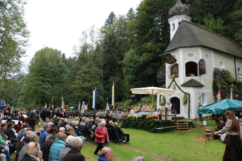„Die 49. Bayerisch-tirolische Wallfahrt zum Ölberg in Sachrang wird am Sonntag, 18. September durchgeführt, der Beginn der Festmesse ist um 10 Uhr. Die beiden Kirchenzüge von Tirol und Bayern setzen sich um 9.15 Uhr am Gasthaus Wildbichl und an der Pfarrkirche Sachrang in Bewegung. Diözesanbischof Hermann Glettler aus Innsbruck zelebriert den Festgottesdienst, Hans Berger leitet den großen Wallfahrtschor und die Gebirgsschützenkompanie Niederndorf stellt die Ehrenformation“, kündigte Dieter Höpfner, der Vorsitzende des Freundeskreises Müllner Peter von Sachrang bei der Jahreshauptversammlung in der Alten Schule in Sachrang die Hauptveranstaltung des Jahres an. „Da uns mit dem Ende des „Sachranger Hofes“ die Möglichkeiten der Bewirtung der Wallfahrtsgäste im Dorf weggebrochen sind, werden wir versuchen mit einem großen Zelt die Versorgung der Gäste mit eigenen Mitteln sicher zu stellen“.