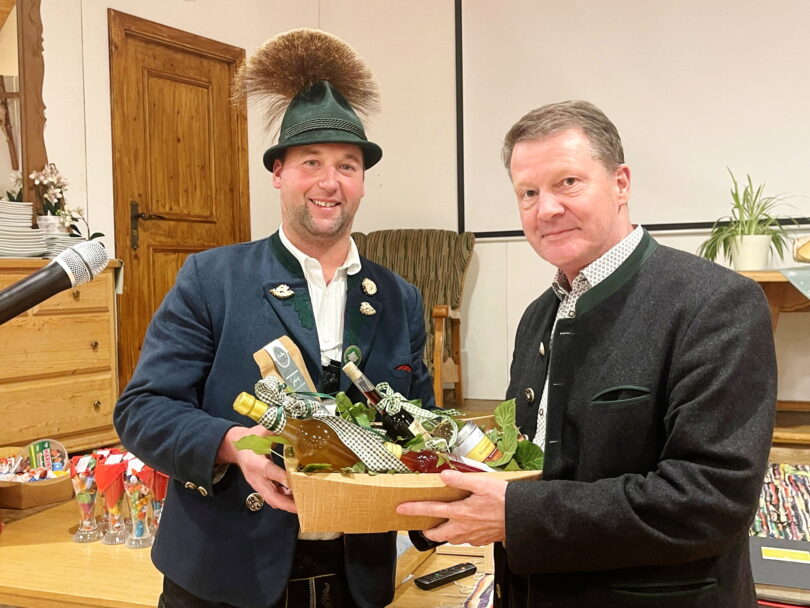 Bürgermeister Andreas Fenzl von der Gemeinde Rimsting dankte im Beisein und auch im Namen der beiden Altbürgermeister Sepp Mayer und Florian Hoffmann, dass die Greimhartinger mit ihrem intakten Vereinsleben auch ein stets gutes Miteinander mit der Gemeinde pflegen und sagte: „Die Vereine sind das Rückrat einer Gemeinde und Gesellschaft, wir ziehen den Hut vor jedem Einzelnen, der sich in einem Ehrenamt zum Wohle der Gemeinschaft einbringt“. Nachdem es für Andreas Fenzl die letzte Versammlung bei den Greimhartinger Trachtlern war und er nicht weiter für das Bürgermeisteramt kandidiert, bedankte sich Vorstand Hans Riepertinger mit einem Präsent beim Bürgermeister für die immer verlässliche Zusammenarbeit und für den guten Besuch bei den Vereinsveranstaltungen. Die stellvertretenden Vorstände Bernhard Mayer, Peter Wallner und Rupert Pflüger bedankten sich vor allem für die Mithilfe bei den Veranstaltungen im Gemeindehaus (Küche, Service und Putzen) sowie bei den Festen auf dem Dorfplatz. Die nächste Veranstaltung ist am Samstag, 15. November ein eintrittsfreier Hoagascht sowie einem kleinen Einakter-Theaterstück mit vereinseigenen Kräften ab 20 Uhr im Gemeindehaus . Über die Ehrungen und über die Vorstellung des Gaufestes 2027 berichten wir noch gesondert.