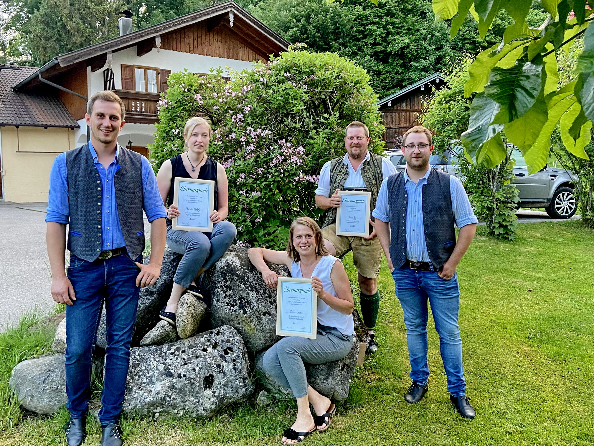 Ehrung von links: 1. Vorstand Florian Krempl, Veronika Spitzl, Katrin Bauer Thomas Graf und 2. Vorstand Alfred Köhler.