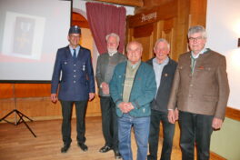 • Ehrung für 50 jährige Mitgliedschaft mit Vorstand Anton Schneebichleer, Andreas Perret, Franz Thanner, Sepp Feuerer, Franz Holzner