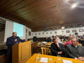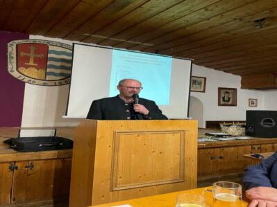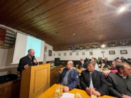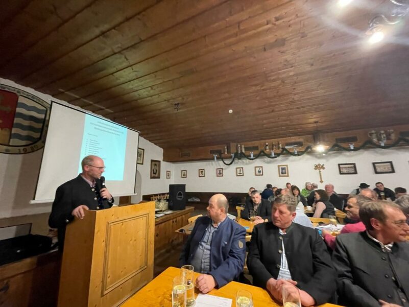 Dessen 1. Vorsitzender Hubert Hartl informierte über den aktuellen Stand beim Bau der neuen Vermarktungshalle und sagte: „Wir haben alles im Griff und sind sehr gut im Zeitplan. Baubeginn für die Halle war im August, und wenn alles nach Plan verläuft soll der Stall mit 60 Boxen für 900 Kälber im Herbst fertig werden“. Über die Schwerpunkte der Zucht durch die genomische Selektion informierte der Zuchtleiter des Zuchtverbandes (ZV) Traunstein Dr. Rudolf Maierhofer. Der Schwerpunkt der Zucht wird nicht mehr auf Milchleistungssteigerung gelegt. Die Zukunft der Rasse Fleckvieh liegt bei hohen Grundfutterleistungen und einer weiteren Verbesserung der Gesundheit und Fitness. Um eine ausreichende Datenbasis dafür zu schaffen warb Maierhofer für eine freiwillige Teilnahme am Programm Gesundheit und Robustheit.