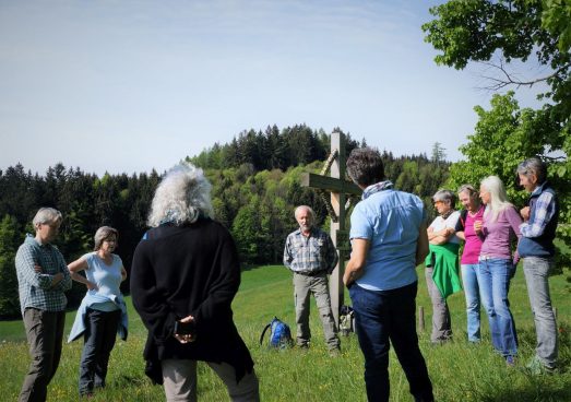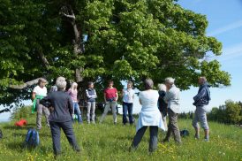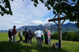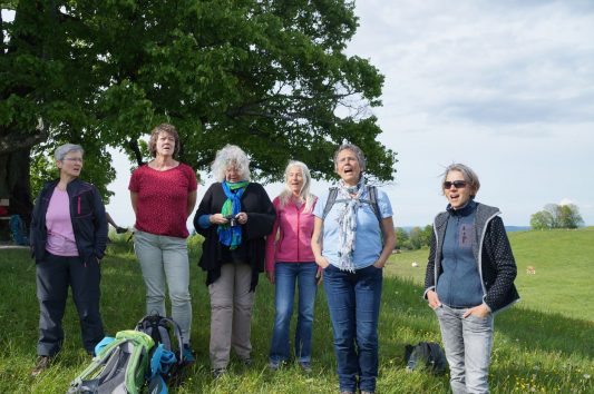 Für die diesjährige Jodelwanderung hatte die Bergwanderführerin, Josefine Lechner, eine besonders gute Wahl in Sachen Jodellehrerin getroffen. Die Musikpädagogin und Jodlerin, Monika Baumgartner, aus Oberflossing bei Mühldorf gab dieses Mal ihre sehr profunden Jodelkenntnisse an die 12 Teilnehmer weiter. Bei herrlichstem Frühlingswetter wanderte die Gruppeauf dem Samerberg von Steinkirchen rüber zur Dandlbergalm. Nicht ohne vorher bei der Linde von Dorfen die ersten Jodler zu Ehren der Hochries anzustimmen. Vom Hochrieser über den Oberaudorfer bis zum Arzberger erklangen bereits die ersten Hei und oi.