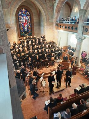 Klanggewaltig war der Chor, den Dirigent und Chorleiter Matthias Bertelshofer durch offenbar intensive Probenarbeit und disziplinierte Einstudierung so weit gebracht hatte, dass ein beinahe immer harmonisch einheitlicher Klangkörper entstand, obwohl die Sänger/innen sowohl vom Alter her als auch der stimmlichen Vorbildung sehr unterschiedlich sind.