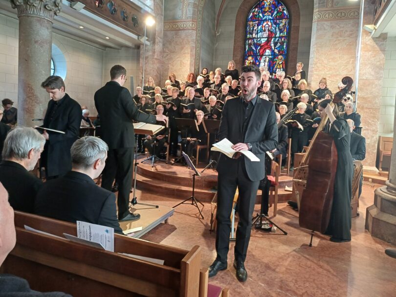 Bericht und Fotos: Christiane Giesen – Große Besetzung mit Chor, Barockorchester der Kantorei Traunstein und hervorragenden Solisten (hier Tenor Konstantin Igl und Bass Martin Burgmaier) bei Bachs Johannespassion in der Auferstehungskirche in Traunstein unter der Leitung von Matthias Bertelshofer.