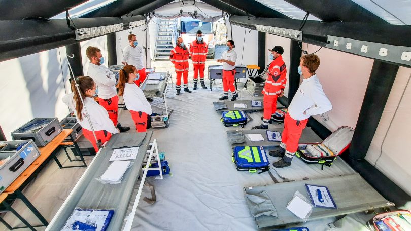 BILDUNTERSCHRIFT 220314: Einblick ins Behandlungszelt der Johanniter. Modernes Material ist da, jetzt braucht es noch weitere Helferinnen und Helfer.