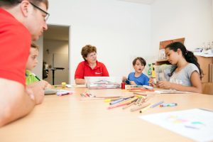In Gruppenstunden helfen Ehrenamtliche der Johanniter den Kindern, ihre Trauer zu verarbeiten – auch durch Kreativität. (Foto: Birte Zellentin).