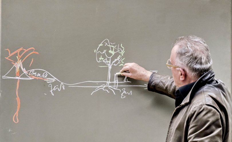 Bereits die erste Eichenpflanzung zu Ehren von Joseph Beuys am Johannes Heidehain Gymnasium in Traunreut begleitete Johannes Stüttgen mit einer Vortragsperformance. Wir freuen uns, dass er nun im Jubiläumsjahr von Joseph Beuys erneut nach Traunreut kommt und die zahlreichen anstehenden Pflanzungen – allein neun bis Mitte November – inhaltlich begleitet.