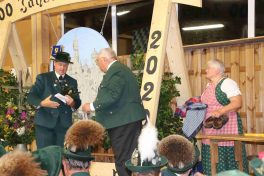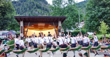 Musik lässt viele Botschaften zu den Menschen kommen, so Pfarrer Mair. Die feierliche Gestaltung der Dankmesse übernahmen die Bidinger Sängerinnen und Sängern, die Halbtonmusik aus Stötten und Trauchgau, die Wertachtaler Stubenmusik und Organist Magnus Sepp aus Marktoberdorf. Nach dem Gottesdienst waren alle Anwesenden zu einem gemütlichen Beisammensein im Vereinsstadel des Trachtenvereins Marktoberdorf eingeladen. 1. Gauvorstand Walter Sirch begrüßte dort alle Anwesenden und blickte zurück in die Geschichte. Auch vor 100 Jahren gab es große Krisen – Spanische Grippe, Hungersnot, Nachkriegszeit 1. Weltkrieg – und trotzdem haben Burschen und Mädla Vereine gegründet und sich zu einem Gau zusammenschlossen. Mit großem Respekt sei diesen Trachtlern gedankt, die mit viel Idealismus die Trachtensache entwickelten und sich für den Gau einsetzten. Lass immer wieder Menschen finden, die sich für Brauchtum und Tracht einsetzen und uns immer wieder erfahren, dass in freundschaftlicher Gesellschaft die Menschen viel bewegen können. Für den Abend wünschte er sich, dass wir a bisle zemesitzet und feiret – wie es halt die Hygienevorschriften zulassen.
