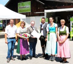 - Bild von links Zimmerermeister und Bautechniker Florian Krempl, Marianne Stocker, Senior-Chefin und kaufmännische Angestellte, Bürgermeister Andreas Friedrich, Markus Stocker, Geschäftsführer, Zimmerermeister und Bautechniker, Christine Stocker, kaufmännische Angestellte und Anne Ebel, kaufmännische Angestellte.