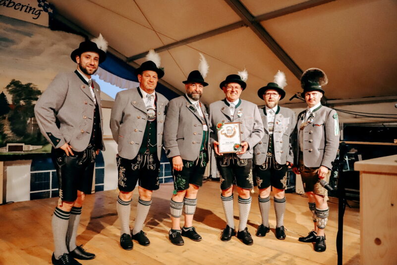 Außerdem verwies Ludwig Redl auf das in 3 Jahre stattfindende „100 Jahre Patenschaft des Trachtenverein Prutting und Schwabering“ hin, dass gemeinschaftlich 2026 gefeiert wird. Zwischenzeitlich spielte die Blasmusik Bad Endorf bevor am Schluss der Gemeinschaftsplattler mit den Dankesworten des Vorstandes das Programm beendet wurde. Die Eltern der Kinder- und Jugendgruppe backten recht fleißig und dadurch war unsere Kuchentheke sehr begehrt. Die Aktiven öffneten ihre Bar und es wurde noch lange gefeiert. Es war ein gelungenes, gemütliches Fest und dafür bedankt sich der Trachtenverein „Vergißmeinnicht“ Schwabering bei allen Trachtlern und Gästen, sowie bei den vielen Helfern und Helferinnen, die bei den Auf- und Abbauarbeiten des Zeltes geholfen haben.