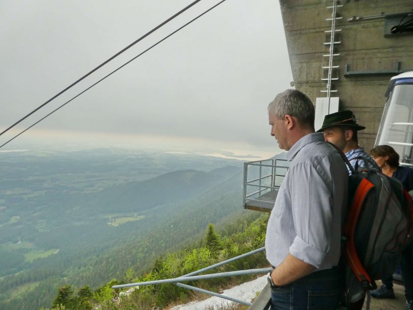 “So fröhlich wie heute sind wir schon lange nicht mehr auf der Hochries zusammen gekommen“, mit diesen Worten hieß Franz Knarr, Vorsitzender der Alpenvereinssektion Rosenheim zusammen mit Samerbergs Bürgermeister Georg Huber etwa zwei Dutzend Gäste willkommen, um die Hochriesbahn zu feiern. Einmal galt es auf zehn Jahre der Übernahme der Bahn durch Gemeinde und Alpenverein zurück zu blicken und dann durften die Verantwortlichen stolz darauf anstoßen, dass die Modernisierungen der Kabinenbahn erfolgreich abgeschlossen werden konnten.