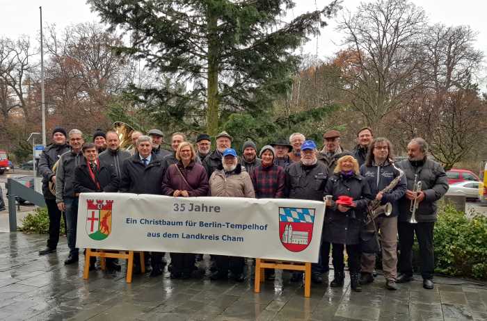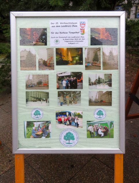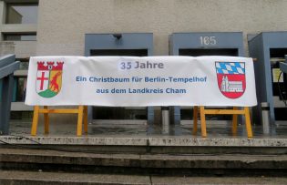 Seit Bestehen der Patenschaft spendet der Landkreis Cham, als besonderes Zeichen der Verbundenheit, dem Bezirk Berlin-Tempelhof alljährlich einen „Christbaum“ aus seiner Region. Dieser schmückt immer ab dem 1. Adventssonntag, bis hinein ins neue Jahr, das Rathaus des Berliner Bezirks am Tempelhofer Damm.  Dieses Jahr stand ein rundes Jubiläum an. Es jährte sich die Baum-Spendenaktion aus dem Bayerischen Wald zum 35. Mal. Zur feierlichen Illumination vor dem Rathaus Tempelhof waren neben zahlreichen Ehrengästen auch die Bürgerinnen und Bürger des Bezirks herzlich eingeladen.