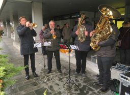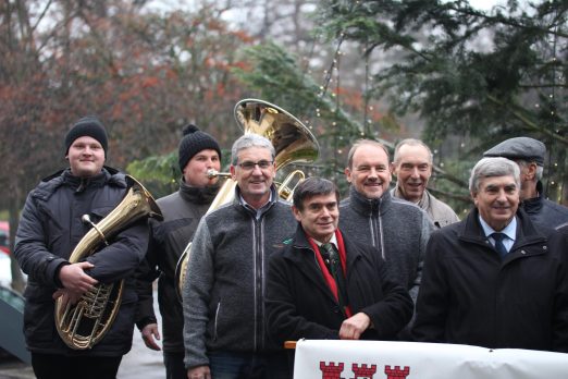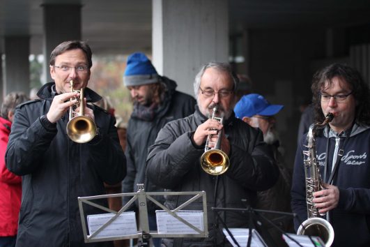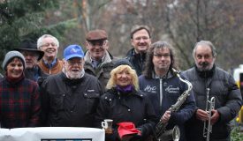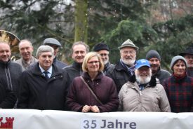 Es gab einen regen Dialog zwischen den Gästen aus Bayern und den Tempelhofer Bürgerinnen und Bürger. Mit dabei vom Volkspark Lichtenrade u.a. Birgit Helmlinger, Dieter Ganz, Manfred Könings, Waldemar Porzezinski und Thomas Moser. Auch der bekannte Berliner Holzkünstler, Horst Giese, hatte sich eingefunden. Er hat im Museumsdorf des Drechsler-Hofes, in Arrach, ein Holz-Kunst-Museum eingerichtet. Mit einer Vielzahl seiner Exponate aus Berlin bringt er dort die kulturelle Verbundenheit der Partnerregionen mit zum Ausdruck. Ebenfalls mit dabei der Vorsitzende des „Vereins der Bayern in Berlin e.V.“, Helmut Amberger. Er beglückwünschte die Partner zu ihrer langjährigen Freundschaftsbeziehung. Aus seiner Sicht bringt die Partnerschaft „Berlin Tempelhof – Bayerischer Wald“ die kulturelle Verbundenheit zwischen Bayern und Berlin mit zum Ausdruck, die auch der „Verein der Bayern in Berlin e.V.“ schon seit 143 Jahren erfolgreich pflegt. Zur stimmungsvollen Umrahmung des Jubiläums brachten die Gäste die Pearl-Brass-Musikanten aus dem Landkreis Cham mit. Unter der musikalische Leitung von Max Eibl sorgte das Brass-Quintett mit ihrer wohlklingenden Blasmusik für eine vorweihnachtliche Atmosphäre. Unterstützend hat sich der Lichtenrader „Haus- und Hofmusiker“ Lutz Fußangel, der mit dem Volkspark-Trägerverein eng verbunden ist, mit seinem Saxophon dazu gesellt.